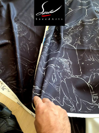 طراحی میشود، با دست روی آن خوشنویسی یا نقاشی میشود و سپس به تن پوشی تبدیل میگردد که تنها "یک نسخه" از آن وجود دارد!
